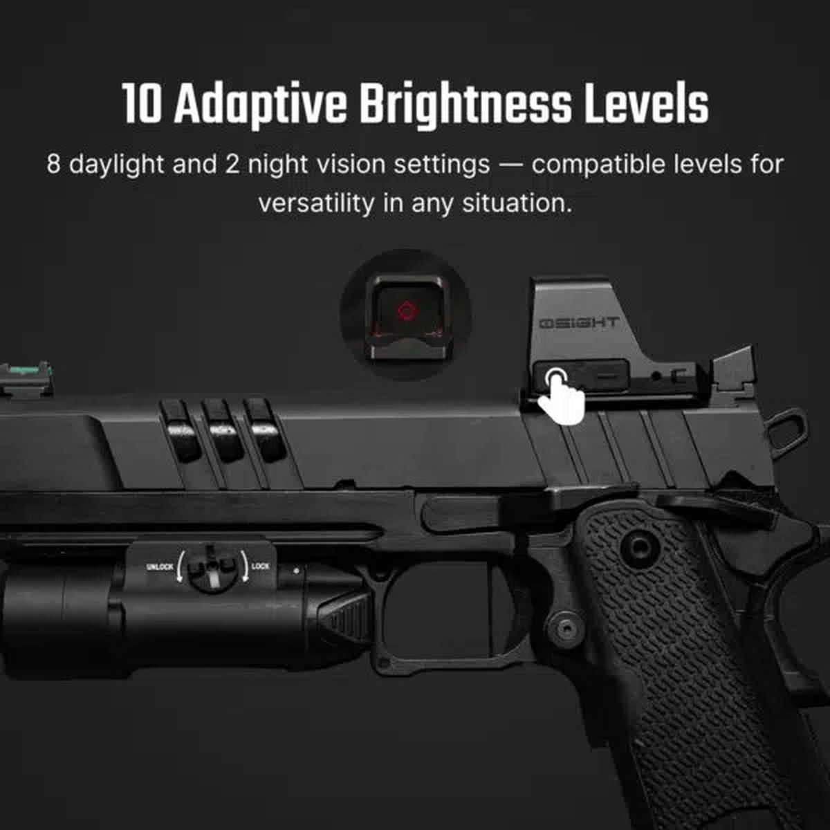 The Olight Osight C 3 MOA Red Dot Sight with RMR Footprint is a high-performance optic built for tactical, self-defense, and sport shooting applications. It works seamlessly on both full-size and compact pistols, offering fast, precise target acquisition. The combination of a 3 MOA dot and a 32 MOA circle reticle provides flexibility for close-range engagements and accurate aiming at longer distances.